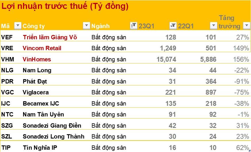Kết quả này giúp lợi nhuận thuần từ hoạt động kinh doanh quý I của Vinhomes đạt hơn 15.500 tỷ đồng. Doanh nghiệp này ghi nhận lợi nhuận sau thuế gần 12.000 tỷ đồng, hơn gấp đôi giai đoạn quý I/2022.
