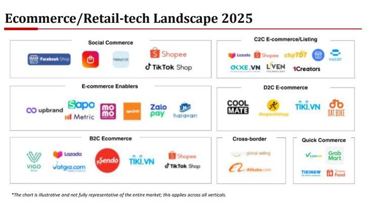Bức tranh kinh doanh của các nền tảng còn lại ghi nhận nhiều gam màu tối. Lazada giữ thị phần đi ngang ở mức 3%, trong khi Tiki đối diện với tình trạng kinh doanh sa sút nghiêm trọng. Doanh thu của Tiki giảm tới 80% bất chấp việc đã nhận khoản đầu tư lũy kế khoảng 670 triệu USD. Xét về ngành hàng, dòng tiền trên thị trường vẫn tập trung chủ yếu vào ba nhóm chủ lực là Làm đẹp (17.700 tỷ đồng), Nhà cửa & Đời sống (13.800 tỷ đồng) và Thời trang nữ (12.100 tỷ đồng).