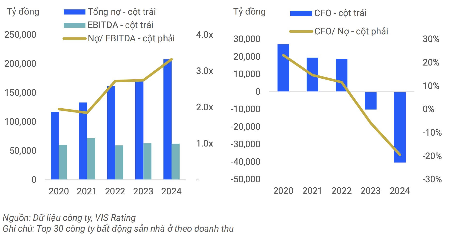 Theo VIS Rating, mặc dù năm 2024 chứng kiến sự cải thiện về doanh thu và nguồn tiền mặt, lợi nhuận và dòng tiền hoạt động (CFO) của các chủ đầu tư bất động sản nhà ở vẫn tiếp tục suy yếu. Tuy nhiên, đơn vị này dự báo các doanh nghiệp sẽ có hiệu quả hoạt động tốt hơn trong năm 2025.