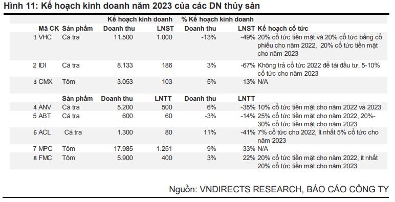 Các chuyên gia VNDirect nhận thấy, do nhu cầu yếu từ các thị trường xuất khẩu chính và chi phí sản xuất ở mức cao, các doanh nghiệp xuất khẩu thủy sản niêm yết trong ngành, đặc biệt là doanh nghiệp cá tra, đã đặt kế hoạch kinh doanh thận trọng hơn so với năm2022.