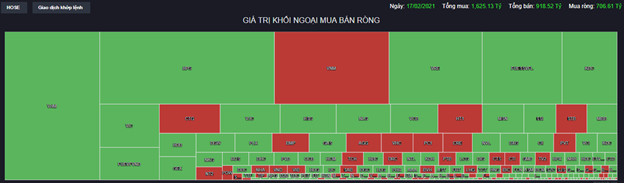 Khối ngoại cũng góp phần quan trọng kéo VN-Index tăng điểm khi mua ròng gần 707 tỷ đồng trên HoSE tập trung trên nhiều Bluechips như VHM, HPG, VRE, FUESSVFL trong khi bán chủ yếu trên VNM.