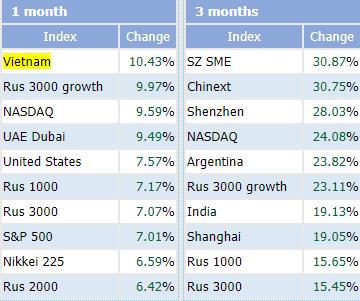 Dữ liệu thống kê từ Stockq cho biết VN-Index là chỉ số chứng khoán tăng mạnh nhất Thế giới trong tháng 8, vượt qua đà tăng của các chỉ số lớn như Russell 3000, Nasdaq, Dowjones, S&P500, Nikkei 225…