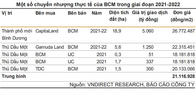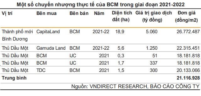 Trong quý IV/2021, BCM đã ký kết thỏa thuận chuyển nhượng 18,9 ha diện tích đất tại thành phố mới Bình Dương cho CapitaLand. Đây sẽ là dự án nhà ở lớn đầu tiên của CapitaLand tại Việt Nam với tổng chi phí phát triển ước hơn 18.330 tỷ đồng. VNDIRECT kỳ vọng BCM có thể hoàn tất thủ tục pháp lý để bàn giao cho CapitaLand và ghi nhận 5.000 - 5.200 tỷ đồng doanh thu trong 2023.