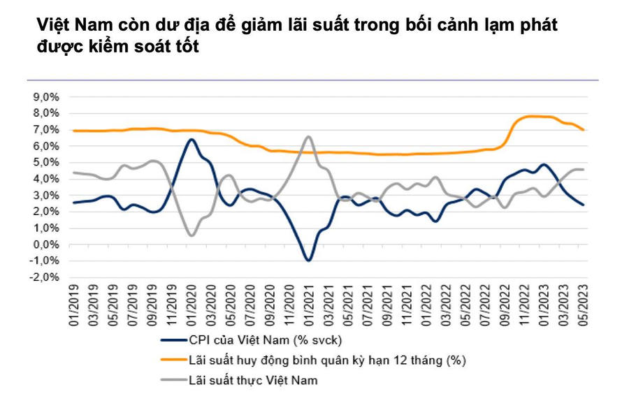 Về lãi suất, đội ngũ phân tích kỳ vọng lãi suất huy động và cho vay sẽ duy trì xu hướng giảm trong nửa cuối năm. Lãi suất tiền gửi bình quân kỳ hạn 12 tháng sẽ giảm xuống mức 6,0- 6,5%/năm vào cuối năm 2023. Lãi suất cho vay có thể giảm rõ rệt trong nửa cuối năm 2023 do chi phí vốn của các NHTM đang giảm nhờ tác động từ việc NHNN cắt giảm lãi suất điều hành trong nửa đầu năm 2023 và NHNN ban hành Thông tư 02 cho phép giãn trích lập dự phòng nợ xấu,…