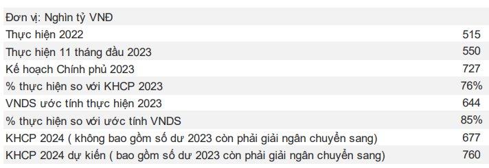 Ngoài ra, theo kế hoạch ngân sách nhà nước năm 2024 của Bộ Tài chính, chi đầu tư phát triển là 677 nghìn tỷ đồng chưa bao gồm số dư còn phải giải ngân từ năm 2023 chuyển sang. Nếu giả định 89% kế hoạch Chính phủ sẽ được giải ngân, thì còn lại 83 nghìn tỷ đồng sẽ được bổ sung vào tổng vốn đầu tư công mục tiêu năm sau. Từ đó, tổng vốn mục tiêu giải ngân năm 2024 sẽ là 760 nghìn tỷ đồng, cao hơn 5% so với mục tiêu của Chính phủ năm 2023. Câu chuyện liên quan còn tới từ quy hoạch tổng thể phát triển kết cấu hạ tầng đường sắt giai đoạn 2030-2045.
