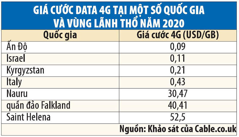 Với giá từ 20.000 - 30.000 đồng/GB năm 2016 - 2017, đến nay, giá cước data 4G đã giảm cực nhanh và sâu, chỉ còn 1.500 - 2.000 đồng/GB, tức là giảm tới 10-20 lần so với 3 năm trước. Với giá cước data 4G rẻ mạt hiện nay, Việt Nam đã trở thành một trong những nước có giá cước 4G rẻ nhất thế giới.