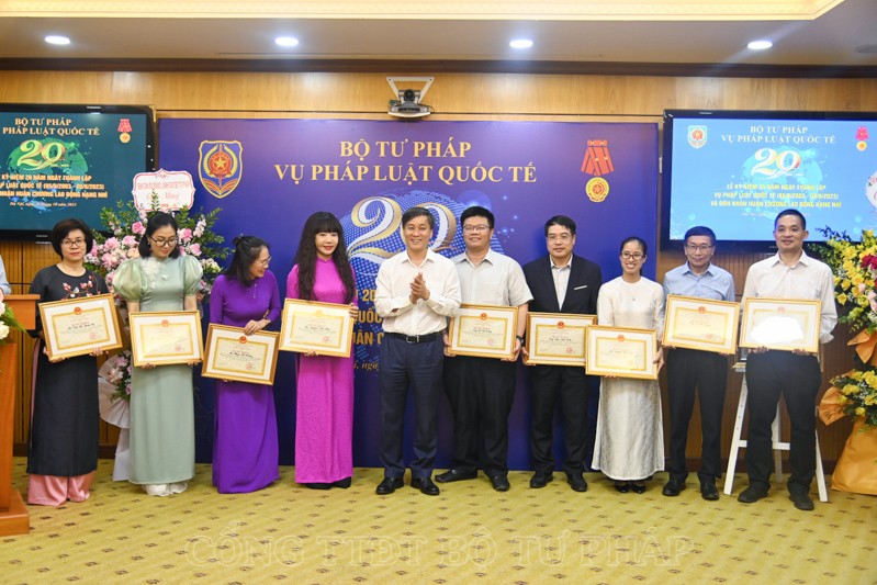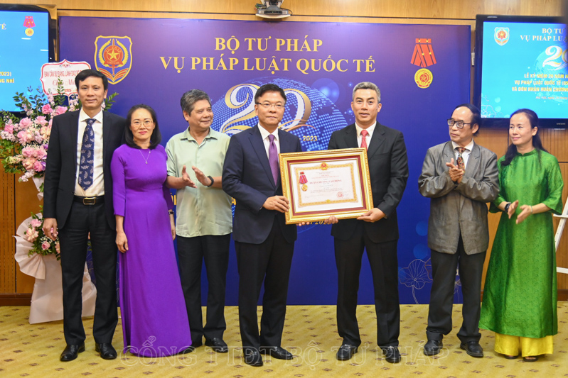 Nhân dịp này, Bộ trưởng Lê Thành Long đã trao tặng Huân chương Lao động hạng Nhì cho Vụ Pháp luật quốc tế và Thứ trưởng Nguyễn Khánh Ngọc đã thay mặt Lãnh đạo Bộ tặng Bằng khen của Bộ trưởng Bộ Tư pháp cho 03 tập thể, 18 cá nhân có thành tích xuất sắc đóng góp cho quá trình 20 năm xây dựng và phát triển Vụ Pháp luật quốc tế.