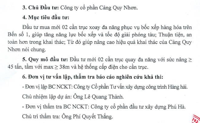 Theo đó, QNP sẽ đầu tư mua mới hai cần trục xoay đa năng với sức nâng không dưới 45 tấn, tầm với tối đa không dưới 38m và hệ thống cấp điện cho cần trục, nhằm phục vụ bốc xếp hàng hóa trên bến số 1 - cảng Quy Nhơn, phường Hải Cảng, TP. Quy Nhơn, tỉnh Bình Định.