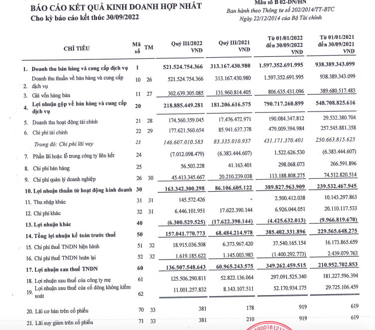 Về kết quả kinh doanh, quý III/2022, GEG ghi nhận doanh thu thuần tăng trưởng 67%, đạt hơn 521 tỷ đồng; lãi ròng gấp 2,4 lần cùng kỳ, đạt 125 tỷ đồng.