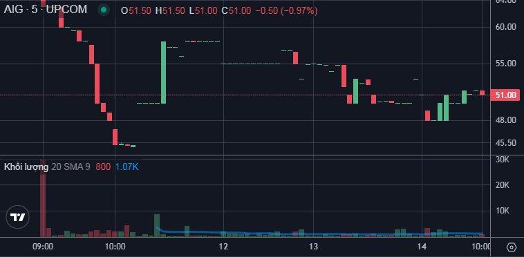 Hết phiên giao dịch ngày 13/11, cổ phiếu AIG đóng cửa ở mức giá 52.900 đồng/cổ phiếu, tương đương giảm 16% so với mức giá tham chiếu ngày đầu tiên. Vốn hóa của công ty theo đó giảm hơn 1.723 tỷ đồng.