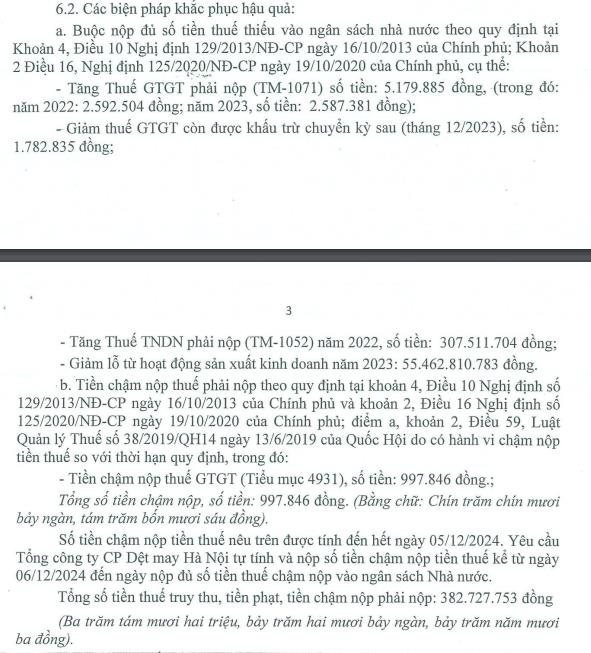 Như vậy, tổng số tiền bị truy thu, phạt, tiền chậm nộp thuế Hanosimex phải nộp là gần 383 triệu đồng.