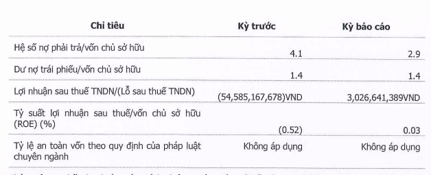 Tại ngày 30/6/2023, hệ số nợ phải trả/vốn chủ sở hữu giảm mạnh từ 4,1 xuống còn 2,9 lần. Trong khi đó, tỷ suất lợi nhuận trên vốn chủ sở hữu (ROE) tăng từ mức -0,52% lên 0,03%.