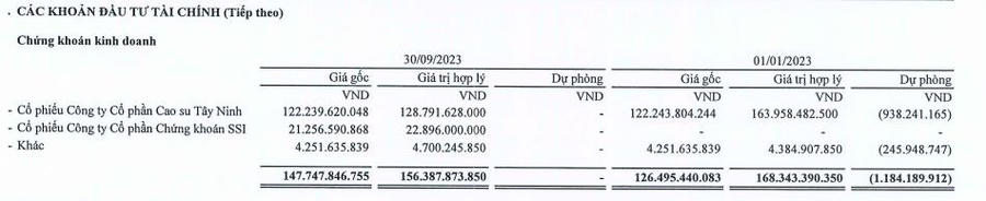 Đáng chú ý, Công ty có khoản đầu tư chứng khoán với tổng giá trị lên tới 147,7 tỷ đồng; trong đó, SIP nắm giữ lượng lớn cổ phiếu SSI của Công ty cổ phần Chứng khoán SSI, với giá gốc ở mức 21,2 tỷ đồng và chi 122 tỷ đồng đầu tư vào cổ phiếu của Công ty cổ phần Cao su Tây Ninh (TRC).