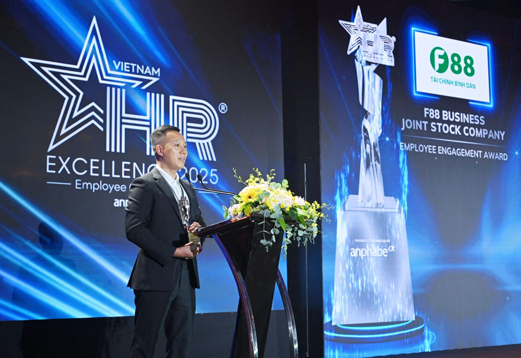 Cũng chính môi trường “Vui đời Tiến bộ” cùng tinh thần gắn kết trên đã giúp F88 nhận giải thưởng HR Excellence ở hạng mục Gắn kết Nhân viên (Employee Engagement) năm 2025 do Anphabe phối hợp cùng Liên đoàn Thương mại và Công nghiệp Việt Nam (VCCI) tổ chức. Ngoài F88, một số doanh nghiệp tiêu biểu khác được nhận giải là Viettel, Jotun, PNJ, MBBank, VPBank…