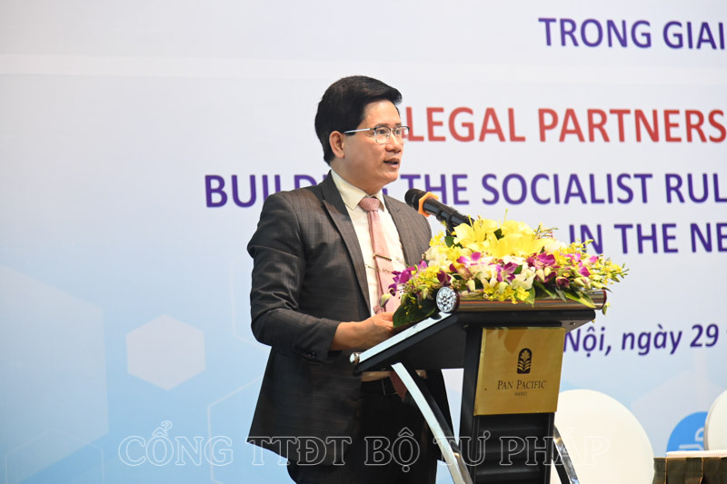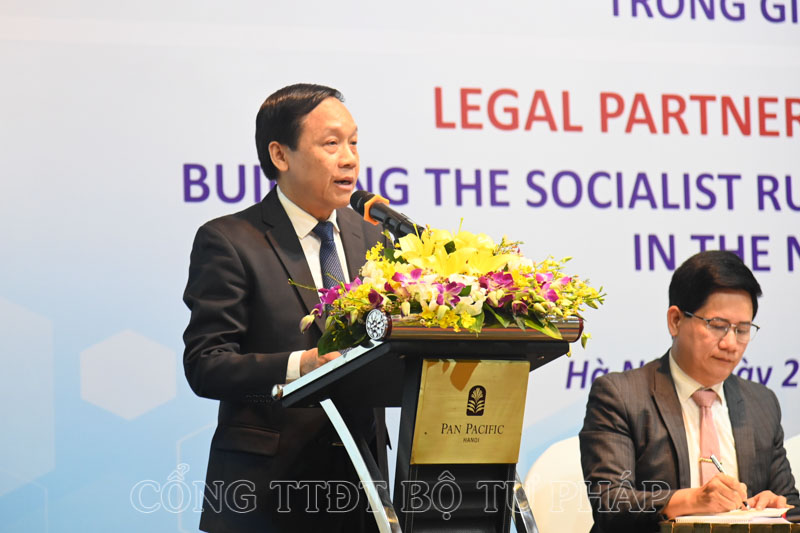 Phát biểu khai mạc, Thứ trưởng Bộ Tư pháp Nguyễn Khánh Ngọc cho biết, Bộ Tư pháp phối hợp với Đại sứ Liên minh châu Âu tại Việt Nam, Chương trình phát triển Liên hợp quốc và các cơ quan có liên quan tổ chức Diễn đàn pháp luật về “Xây dựng hoàn thiện Nhà nước pháp quyền xã hội chủ nghĩa Việt Nam trong giai đoạn mới” nhằm cập nhật, chia sẻ thông tin về những định hướng xây dựng và hoàn thiện Nhà nước pháp quyền xã hội chủ nghĩa Việt Nam.