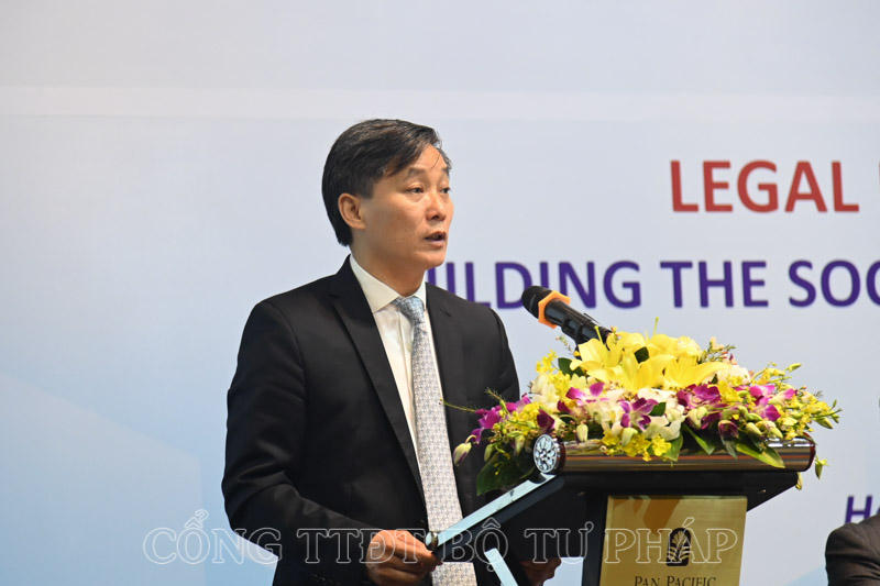 Vụ trưởng Vụ Hợp tác quốc tế, Bộ Tư pháp Nguyễn Hữu Huyên phát biểu tại Diễn đàn