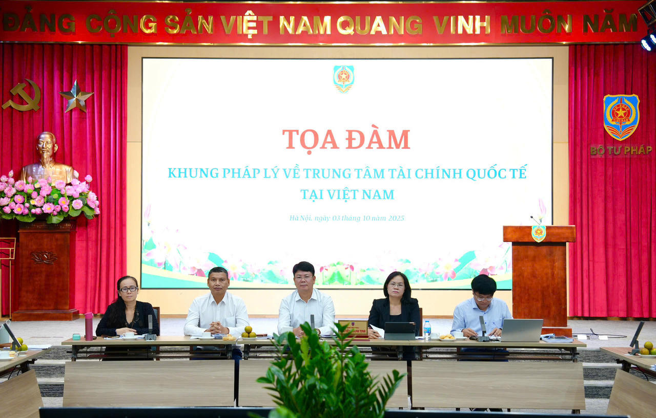 Sáng 3/10, Bộ Tư pháp tổ chức Toạ đàm Khung pháp lý về Trung tâm tài chính quốc tế tại Việt Nam nhằm hoàn thiện các dự thảo Nghị định quy định chi tiết và hướng dẫn thi hành Nghị quyết số 222/2025/QH15 của Quốc hội về Trung tâm tài chính quốc tế tại Việt Nam. Thứ trưởng Bộ Tư pháp Nguyễn Thanh Tịnh chủ trì Toạ đàm.