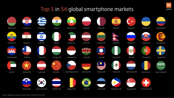 Xiaomi luôn cố gắng chia nhỏ thị trường của mình và cách làm này dường như đang mang lại hiệu quả. Hãng đã ghi nhận doanh thu ở các thị trường ngoài nước lần đầu tiên chiếm hơn một nửa tổng doanh thu (55%).