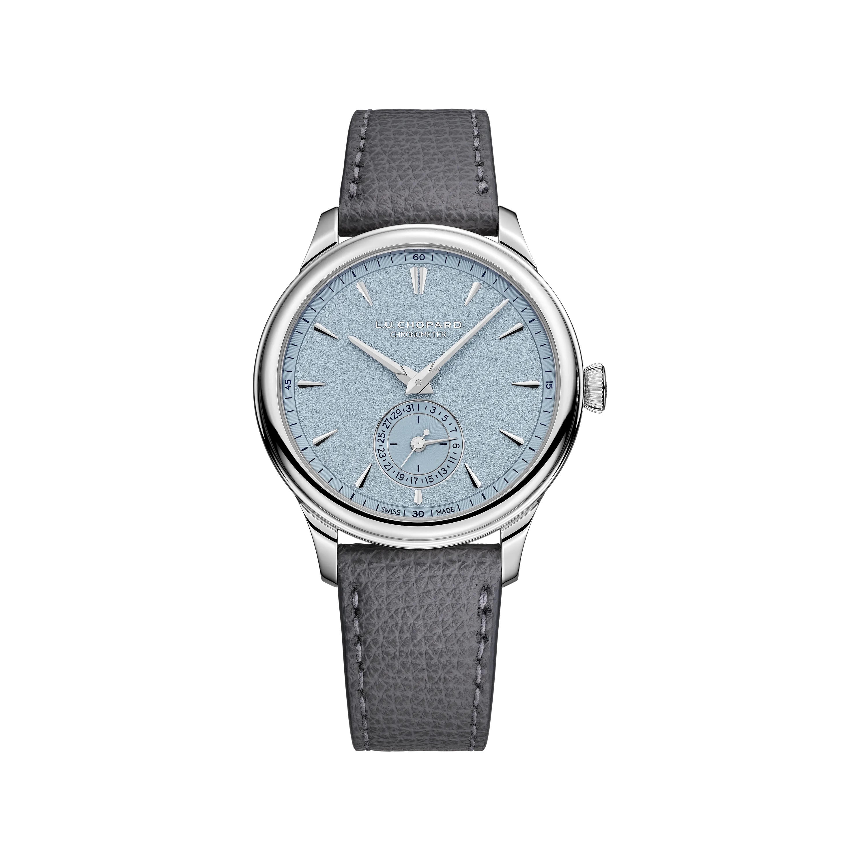 Bạch kim tiếp tục được chọn là chất liệu biểu tượng cho vẻ đẹp “tinh khiết” trên chiếc Chopard L.U.C QUATTRO MARK IV – thế hệ thứ tư của dòng đồng hồ lên cót tay với 2 ổ cót đôi và mang bộ máy được kiểm chứng bởi con dấu Geneva Seal danh giá, đảm bảo rằng từng chi tiết đều được trang trí thủ công theo truyền thống chế tác của vùng Geneve.