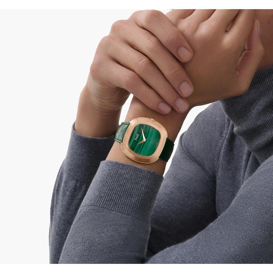 Với tùy chọn 10 loại vân đá khác nhau, cùng chất liệu vỏ, kiểu dáng kim hay các chi tiết trang trí, Piaget đã biến chiếc đồng hồ giản đơn kích thước 45 x 43 mm này thành một tuyên ngôn nghệ thuật trên cổ tay.