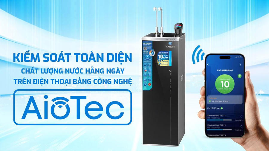 KAE-S88 Promax được trang bị công nghệ VoiceCall - lấy nước bằng giọng nói và công nghệ AioTec. Công nghệ VoiceCall giúp người dùng dễ dàng lấy đúng loại nước theo nhu cầu chỉ bằng các câu lệnh được cài đặt sẵn. Công nghệ AioTec cho phép kết nối máy lọc nước với điện thoại thông minh thông qua app Karofi 365 để người dùng chủ động theo dõi chỉ số tinh khiết của nước, tình trạng lõi lọc…