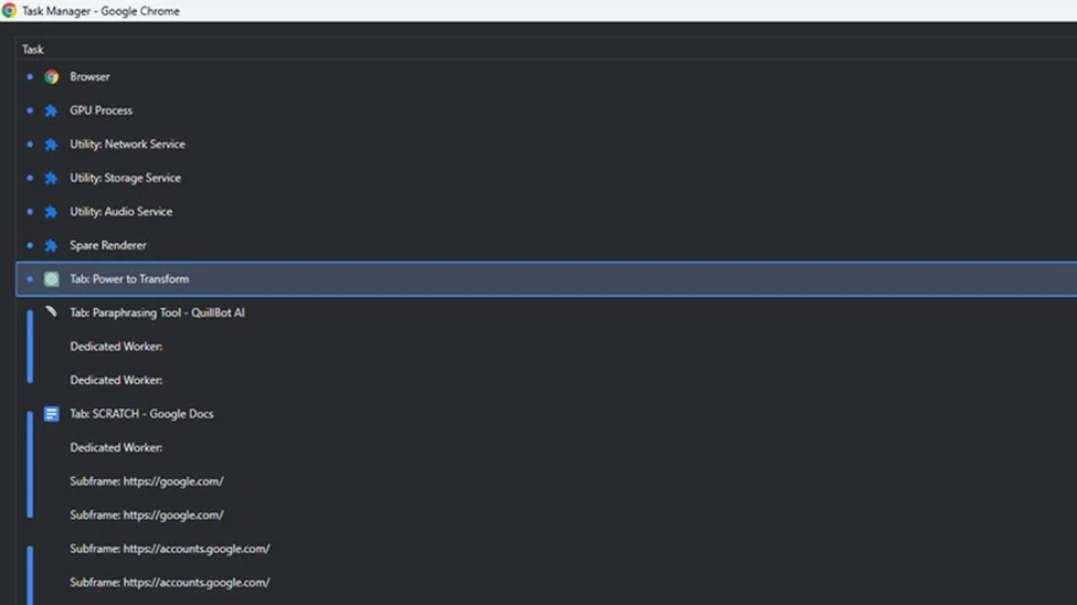 Tuy nhiên, lưu ý rằng việc kết thúc một quá trình sẽ tắt tab luôn, vì vậy hãy đảm bảo lưu mọi công việc bạn đang thực hiện trong tab cụ thể đó trước khi đóng nó.