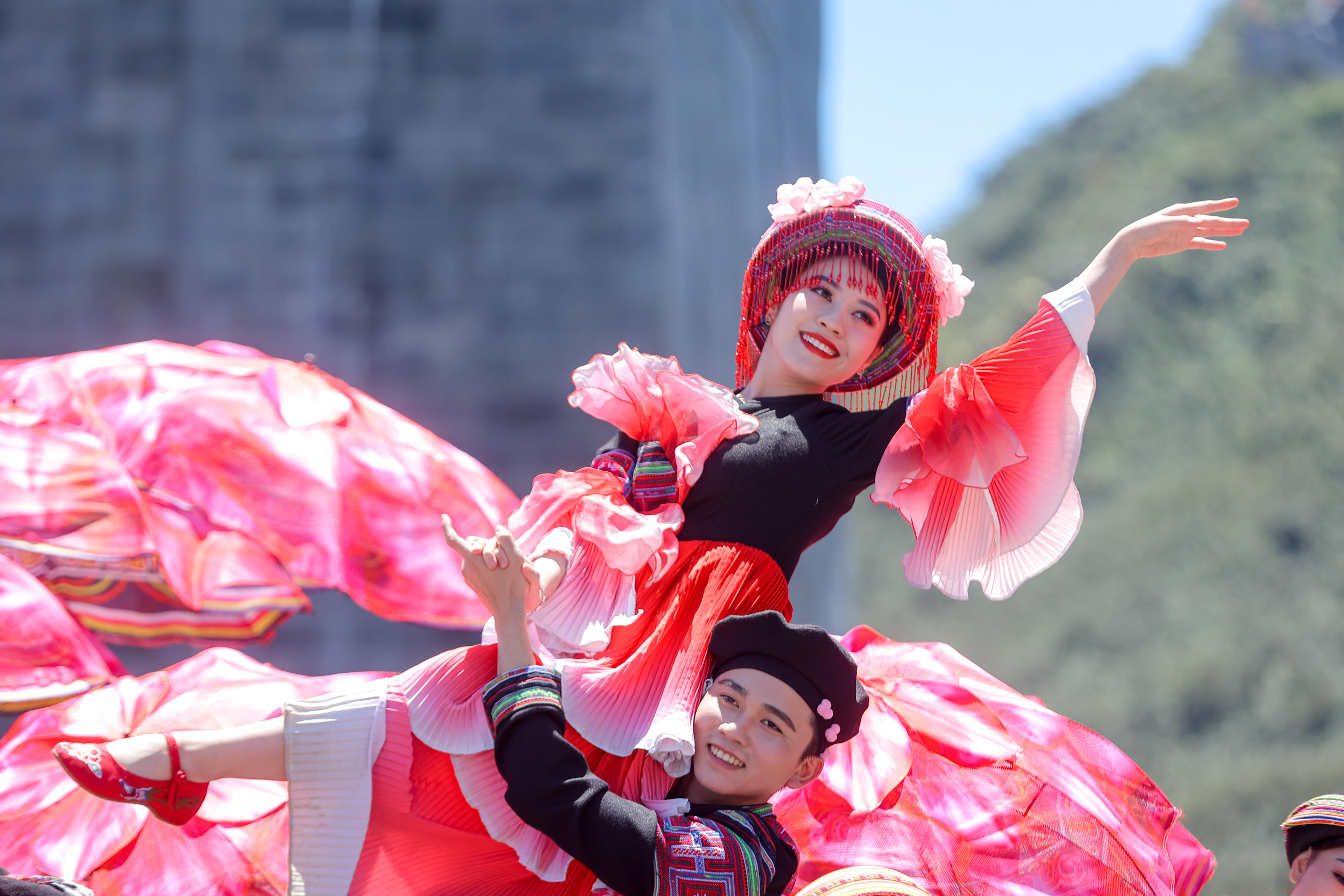 Sân khấu chính của lễ hội trong khuôn viên Ga đi cáp treo bên Thung lũng hoa hồng sẽ không ngừng đưa du khách đi qua những cung bậc cảm xúc khác nhau. Ngỡ ngàng trước một không gian được kết từ triệu đóa hồng, vui tưng bừng trước những màn trình diễn nghệ thuật về hoa hồng, hay tò mò khám phá để rồi phải lòng văn hóa Tây Bắc, qua trích đoạn biểu diễn tái hiện đám cưới người Dao Đỏ do Đoàn văn hóa nghệ thuật tỉnh Lào Cai dàn dựng.