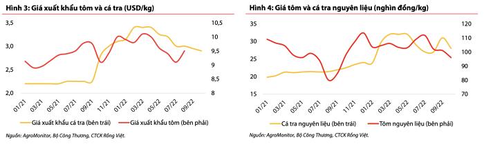Giá tôm và cá tra nguyên liệu vẫn đang duy trì mức cao do nguồn cung thấp và giá thức ăn ở mức cao. Dù vậy, VDSC cho rằng giá nguyên liệu có thể sẽ giảm nhẹ trong năm 2023 do nhu cầu suy yếu, nhưng vẫn duy trì mức cao hơn so với 2021.