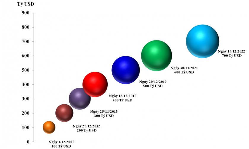 Một cột mốc mới 700 tỷ USD sẽ được ghi nhận vào ngày 15/12/2022 (tính đến ngày 14/12/2022, trị giá xuất nhập khẩu là 698,5 tỷ USD).