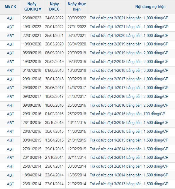 Ngày 15/03 tới, ABT sẽ chốt danh sách cổ đông tham dự ĐHĐCĐ thường niên 2023. Thời gian tổ chức Đại hội dự kiến vào ngày 15/04/2023.