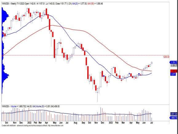 Trong tháng 7 này, nhóm phân tích Yuanta dự báo chỉ số VN-Index có thể sẽ hướng về mức 1.200 điểm, song vẫn có thể chịu áp lực điều chỉnh ngắn hạn khi thị trường đang bước vào mùa công bố KQKD quý 2/2023. Tuy vậy, nhà đầu tư có thể tiếp tục tăng dần tỷ trọng cổ phiếu trong trung hạn khi xu hướng tăng trung hạn vẫn duy trì.