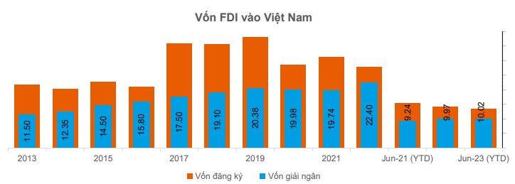 Về tình hình vĩ mô Việt Nam, tăng trưởng GDP quý 2/2023 dù cải thiện hơn so với quý 1 nhưng mức 4,14% vẫn thấp hơn kỳ vọng. Sự suy giảm đà tăng trưởng của ngành công nghiệp chế biến chế tạo là một trong những nguyên nhân khiến GDP tăng trưởng thấp trong 6 tháng đầu năm 2023 khi công nghiệp chế biến chế tạo ngày càng đóng góp lớn cho nền kinh tế những năm gần đây.